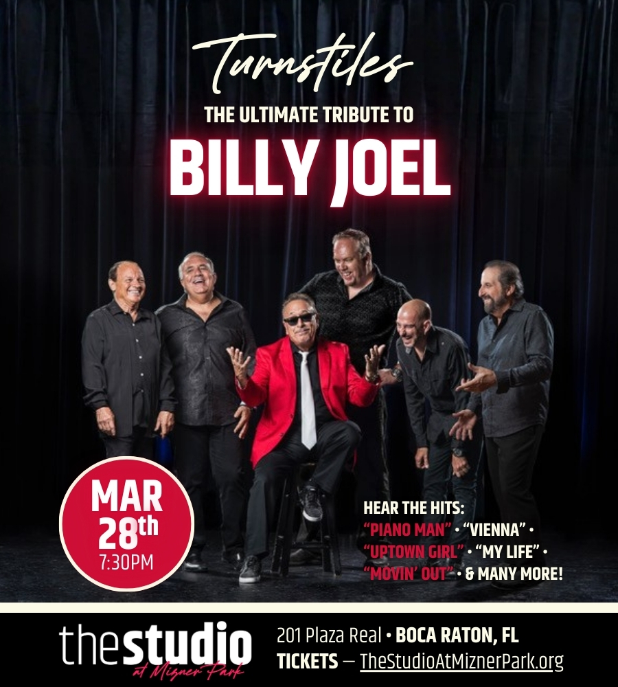 The Studio is proud to present:TURNSTILES The ULTIMATE Tribute to Billy Joel Saturday, March 28th — 7:30 PMA Tribute to the Music of Billy Joel! Turnstiles…the ULTIMATE Tribute to Billy Joel — one of America’s most celebrated singer/songwriters, and the Original Piano Man. Turnstiles is now in its second decade selling out venues for audiences […] ...